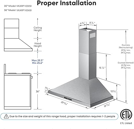 - 【Hassle-Free Purchase】: All installation hardware and clear instructions are included with your wall mount range hood 30-inch. Free replacements for accessories such as filters and lights are available when needed. Our dedicated customer service team is always here to assist with any questions or concerns.
